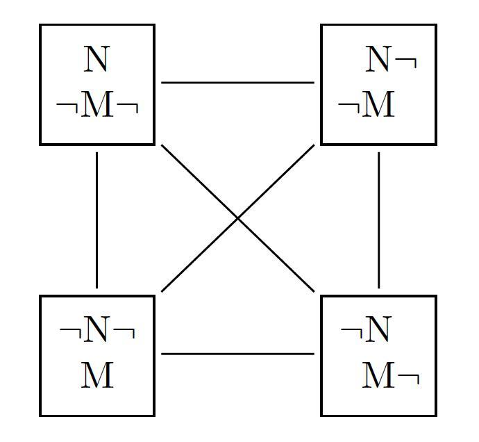 - 'N' stands for the necessity operator, 'M' stands for the possibility operator.