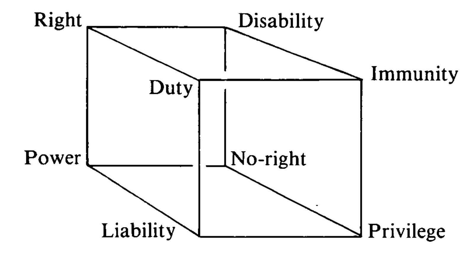 - Logically speaking, the correlations are logical equivalences, e.g. given two parties a and b, the correlation between "right" and "duty" means that "a has a right toward b" iff "b has a duty toward a". (Also cf. the PhD dissertation of Stef Frijters, 2021.)