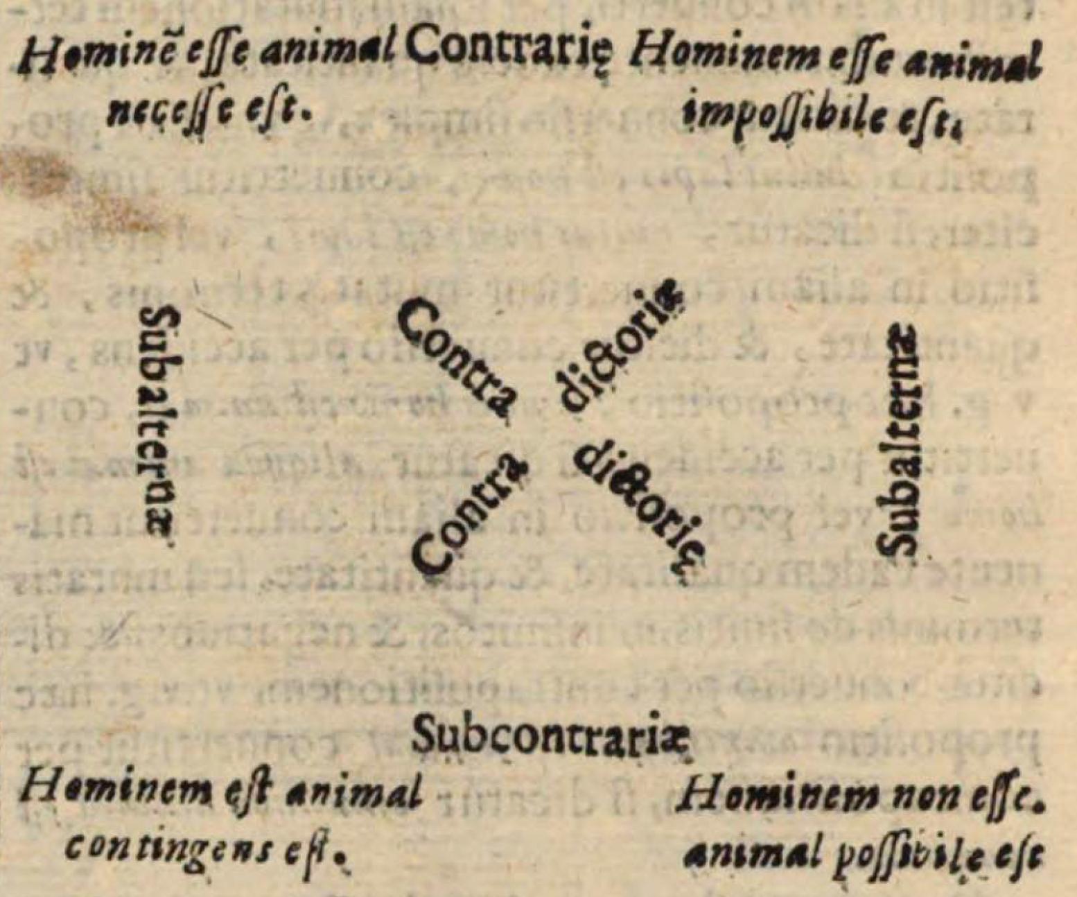 - In the lower left corner, "Hominem est animal" should be corrected to "Hominem esse animal" (like in the other three corners of the diagram).