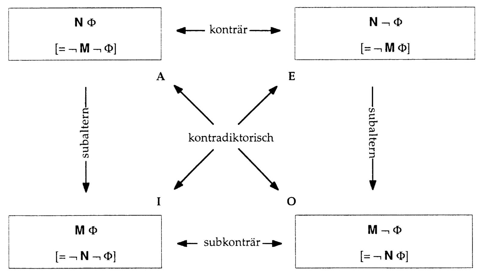 - Das logische Quadrat für modale Operatoren