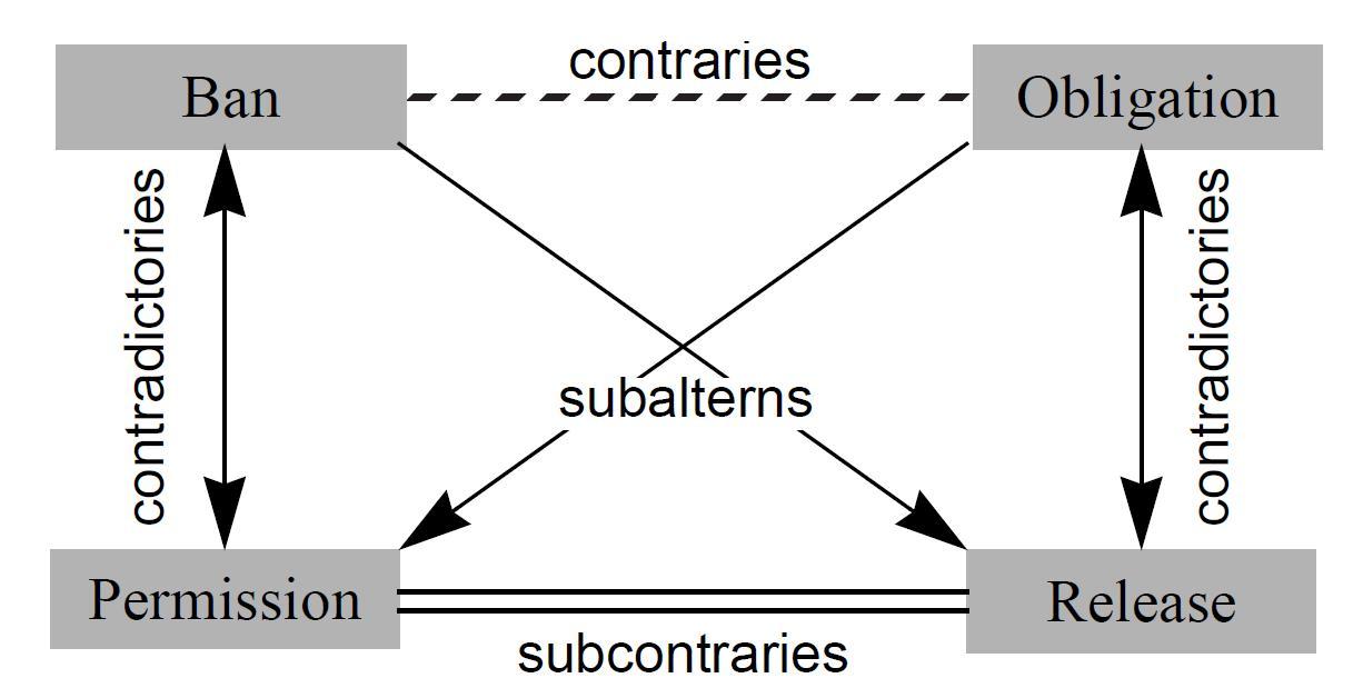 - The deontic square of opposition.