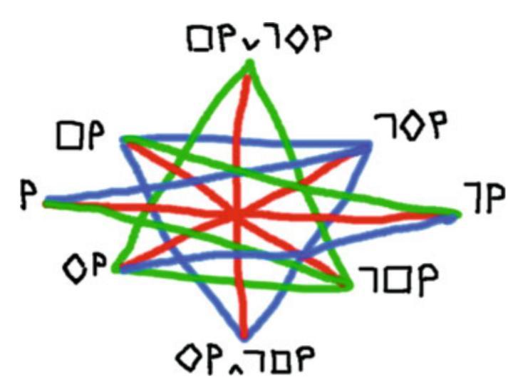 - The relation between $\Box p$ and $\neg p$ should be in blue (contrary) instead of green (subcontrary). The relation between $\Diamond p$ and $\neg p$ should be in blue (contrary) instead of green (subcontrary).