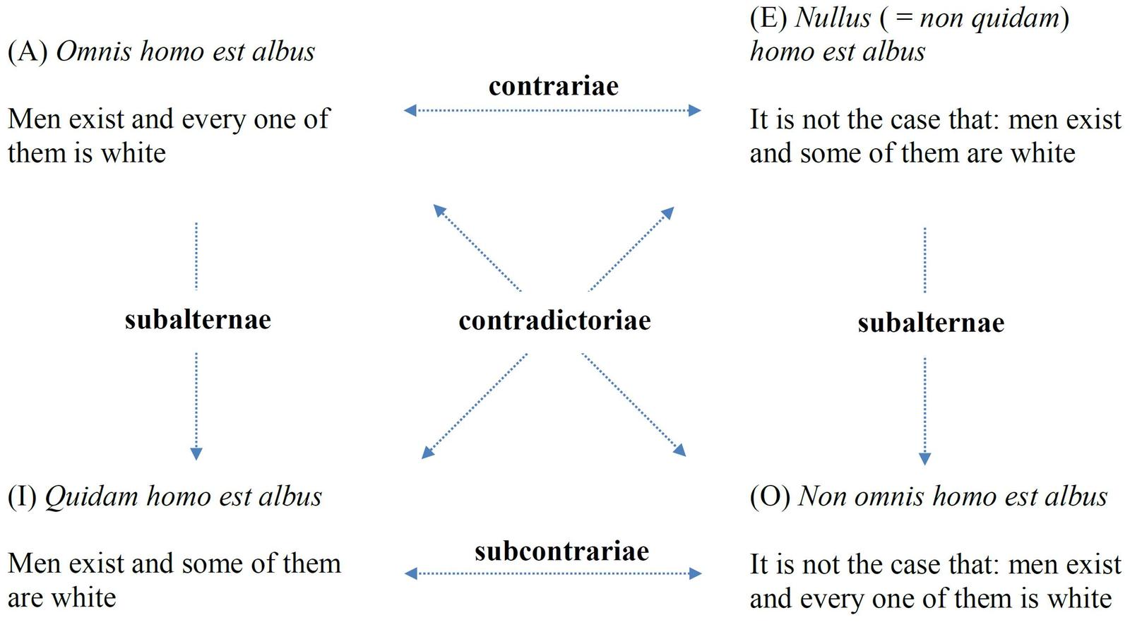 - Boethius’s and Abelard’s formulations of the traditional square of opposition.