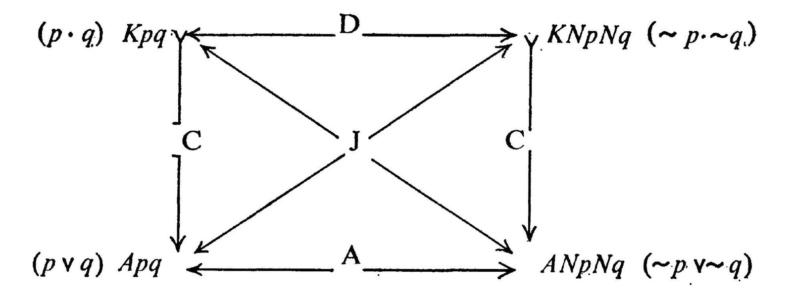 The edges are labeled with propositional connectives corresponding to the Aristotelian relations (cf. Theorem 1 of Smessaert & Demey, 2014, Logical Geometries and Information in the Square of Oppositions, Journal of Logic, Language and Information 23 : 527 - 565).