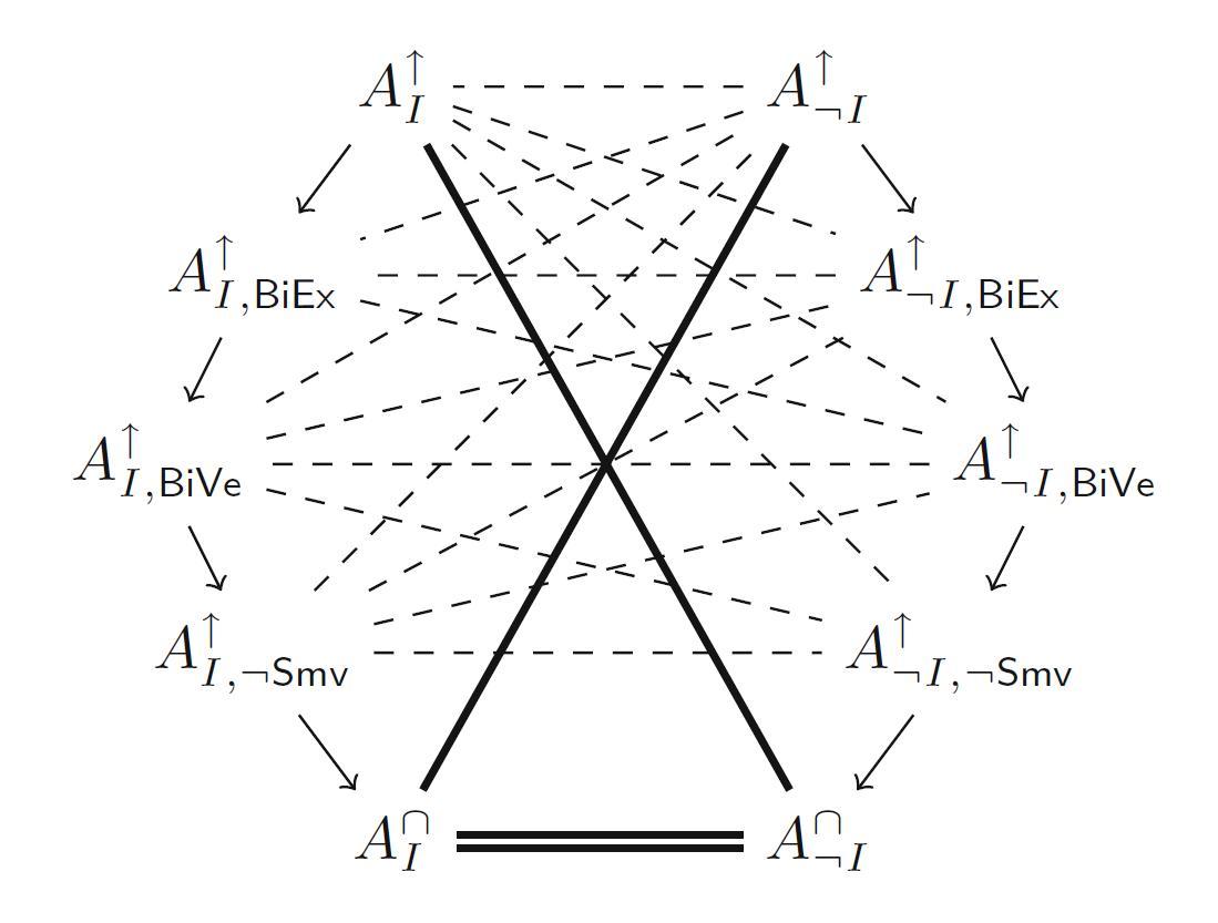 - In order to obtain the negation closure of this diagram, one has to add the negations of the six vertices (three on the left, three on the right) in the middle of the diagram.