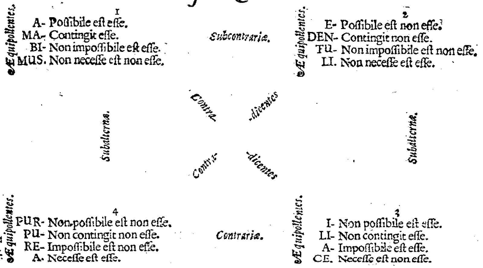 - The diagram is flipped: the contrariety is at the bottom and the subcontrariety is at the top.