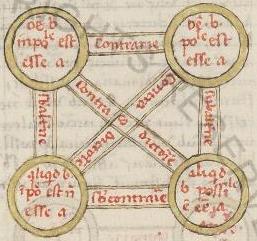 - In the I-corner, 'impossibile est non esse' should be replaced with 'impossibile est esse'.