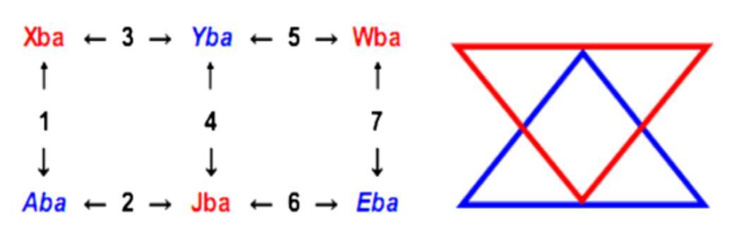 X-J-W constitutes a contrariety triangle; its negation closure is another JSB sigma-3.