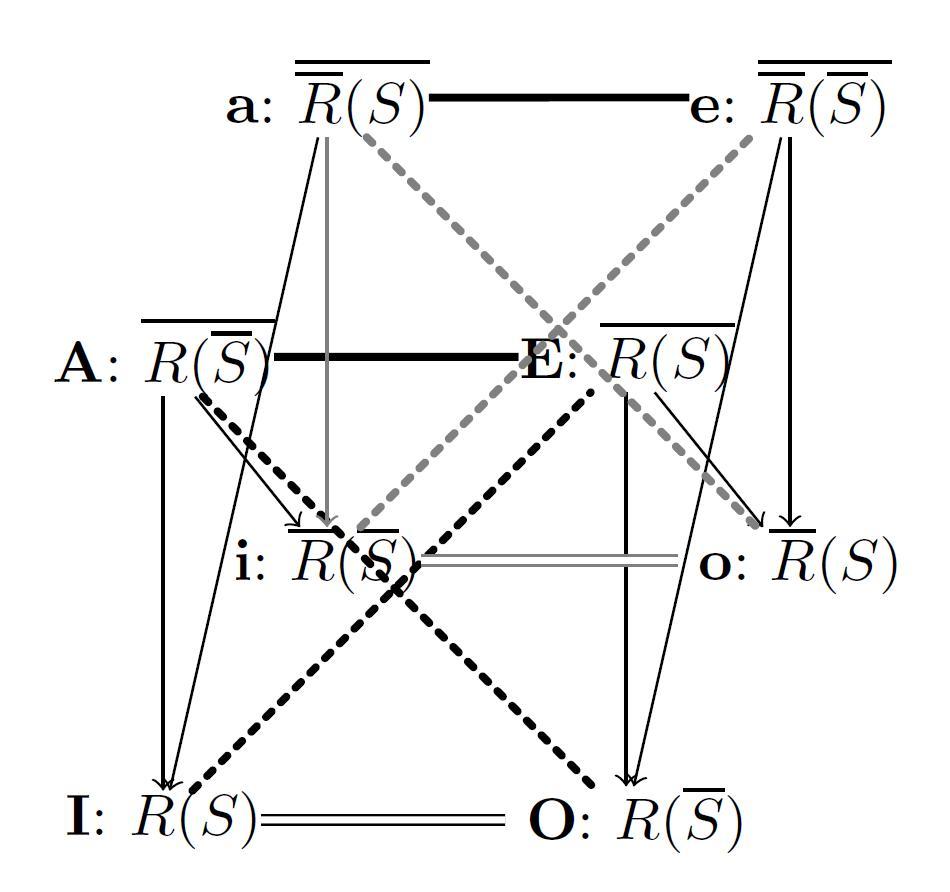 - Cube of oppositions induced by a relation $R$ and a subset $S$