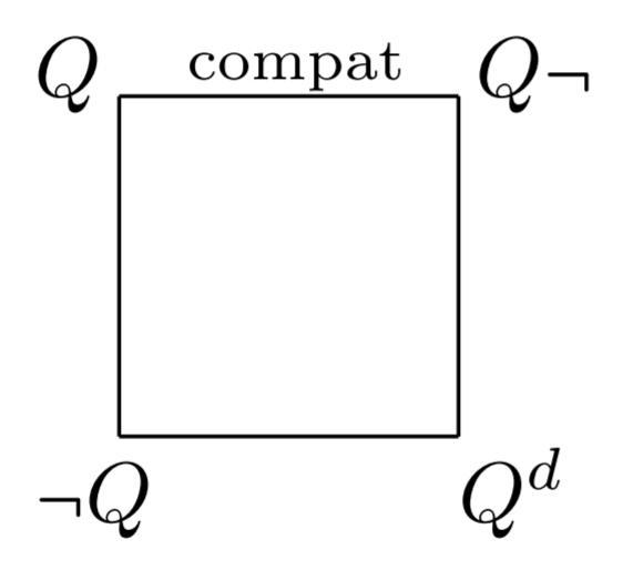 - This is a twisted square: the contradiction (external negation) relations are on the vertical edges, rather than on the diagonals.