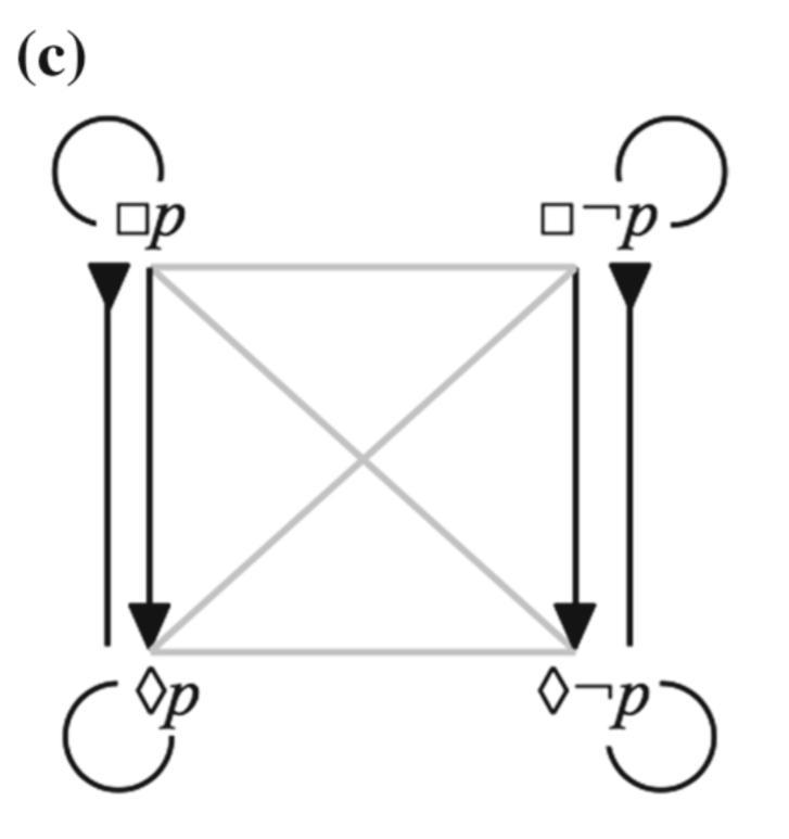 - The a opposition, b Aristotelian and c implication square for $\{\Box p, \Diamond p, \Box\neg p, \Diamond\neg p\}$