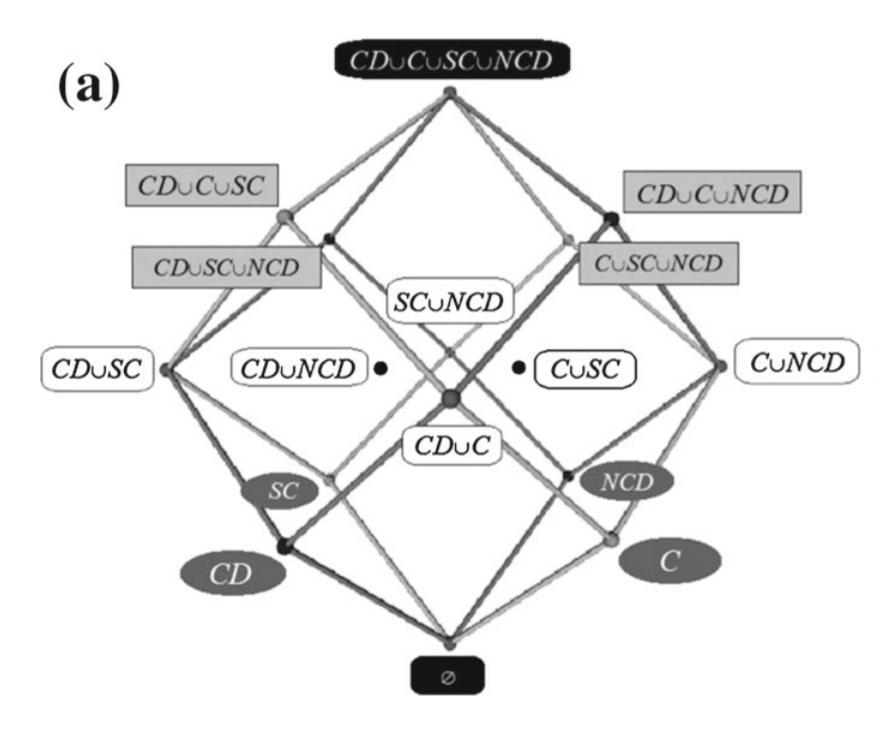 - a Hasse and b Aristotelian rhombic dodecahedron for $\wp^\cup(\mathcal{OG})$
