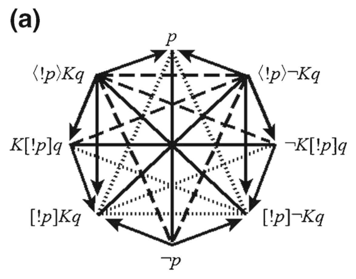 - Béziau octagon with a formulas from $\mathsf{PAL}$, and b their bitstring representations