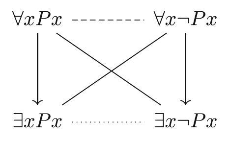 - Three examples of Aristotelian diagrams. Full, dashed and dotted lines visualize contradiction, contrariety and subcontrariety, respectively; arrows visualize subalternations