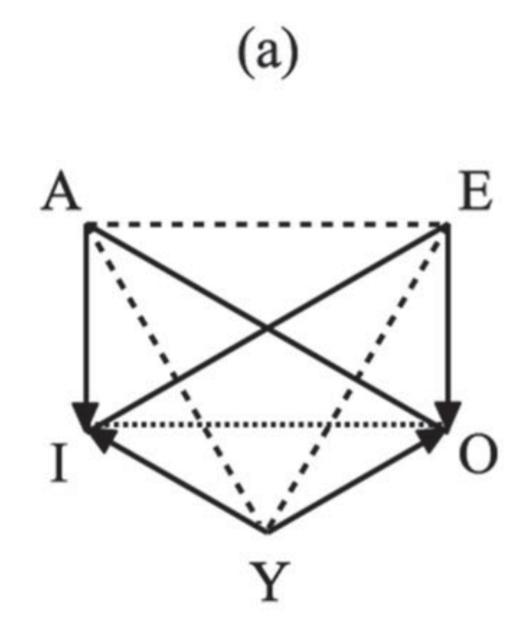 - (a) Abstract pentagon of opposition; (b) Kalinowski’s deontic pentagon; (c) Gildin’s moral pentagon; (d) Horn’s quantificational pentagon.