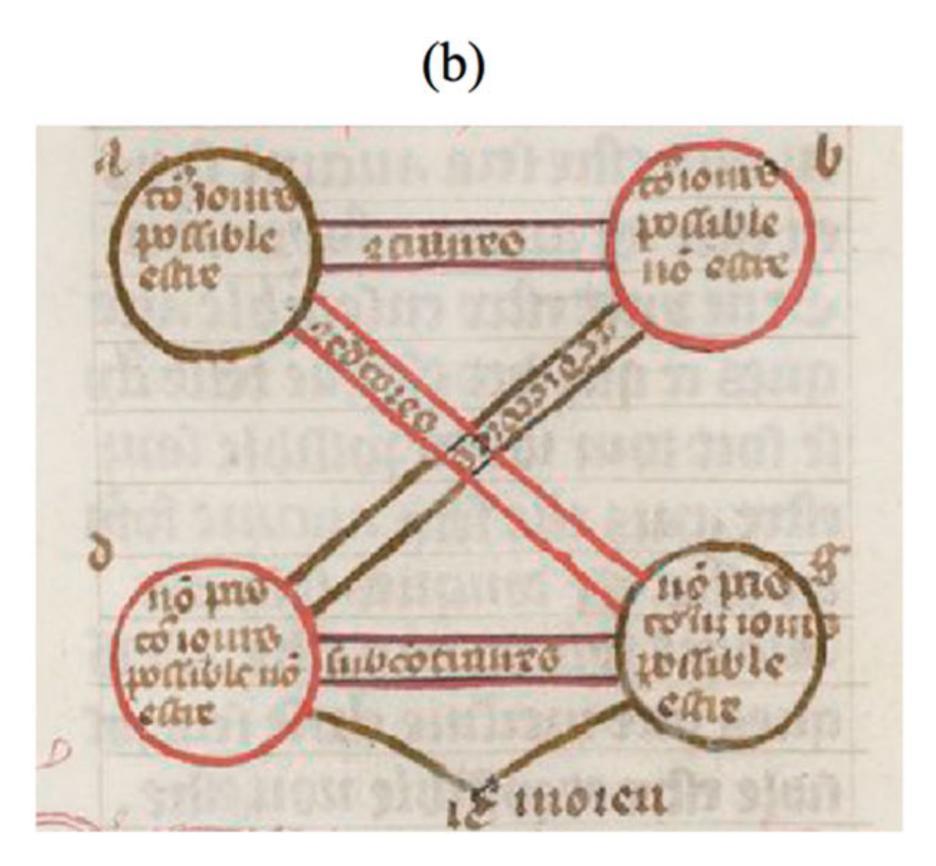 - (a) Oresme’s pentagon of opposition; (b) the actual pentagon in BnF Ms. franç. 1082, fol. 51r.