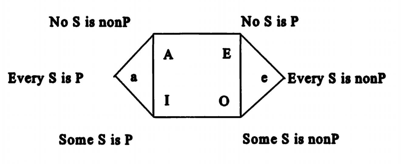 - If the existential import assumption is satisfied, a and e are defined and are equivalent to A and E, respectively; consequently, the diagram is a classical sigma-2.