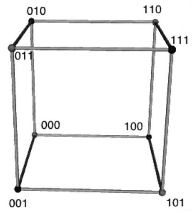 - $\textit{EPM}$ associated Boolean algebra $B_3$ is represented by cube $C_3$ with its bitstring decoration (LTR) in $\mathbb{R}^3$
