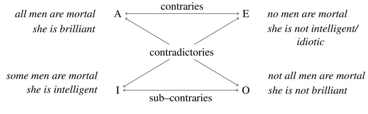 - Aristotle’s square of opposition for all/some and brilliant/intelligent