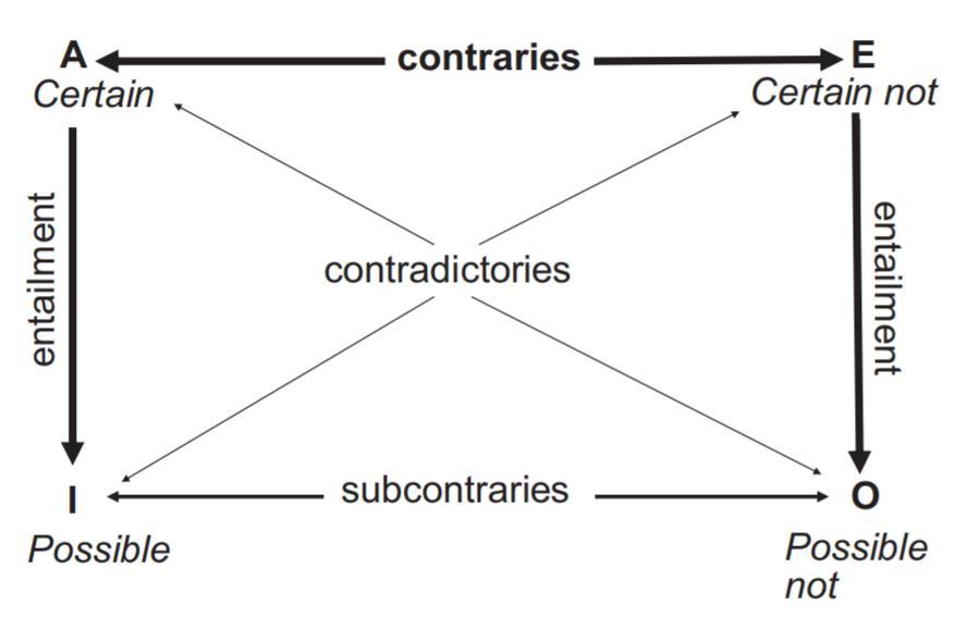 - Depiction of Aristotle’s square using quantifiers and probability expressions