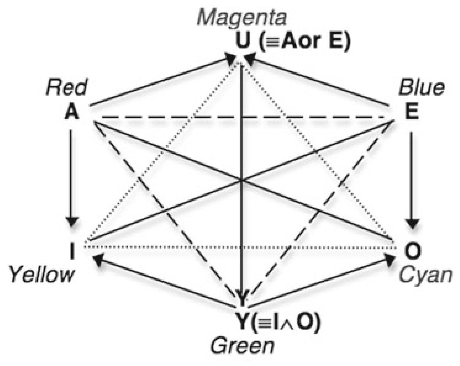 - Blanché star (Colours): 6 vertices (WHITE (111) and BLACK (000) missing)