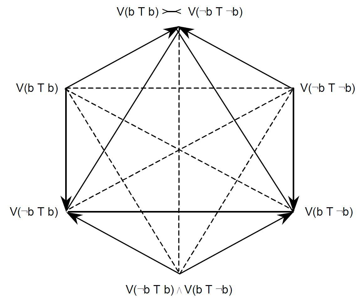 - Sechseck der Verbote, die sich auf die Transformationen des Verbleibens und des Wechsels beziehen