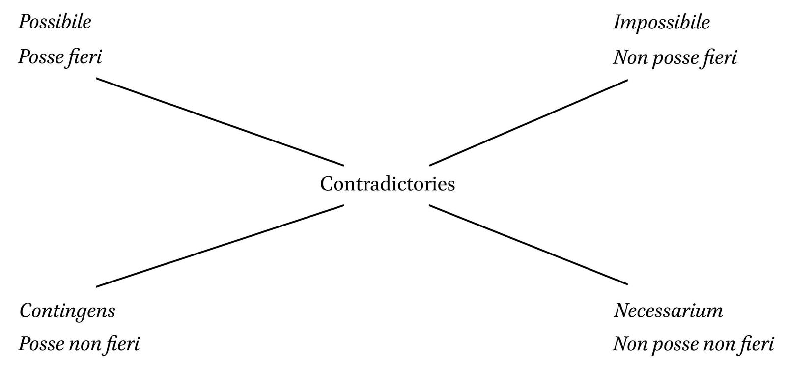 - The contradictory relations are actually on the upper and lower horizontal edges of the diagram, rather than on the diagonals.