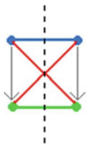 - The dashed line indicates the (mirror) symmetry of the diagram.
