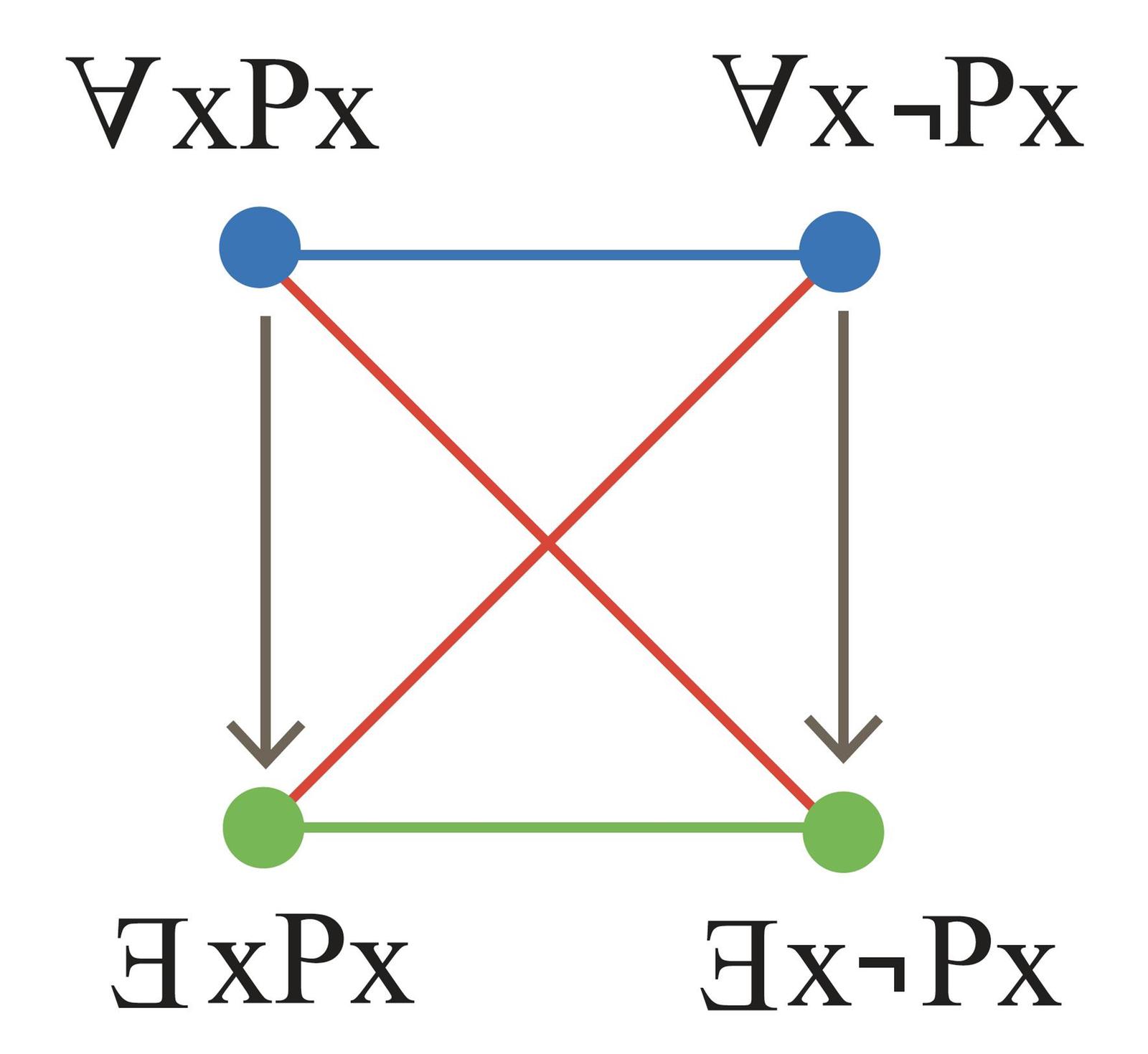 - The logical square expresses simply the mutual interdefinability of the quantifiers. - formal reading