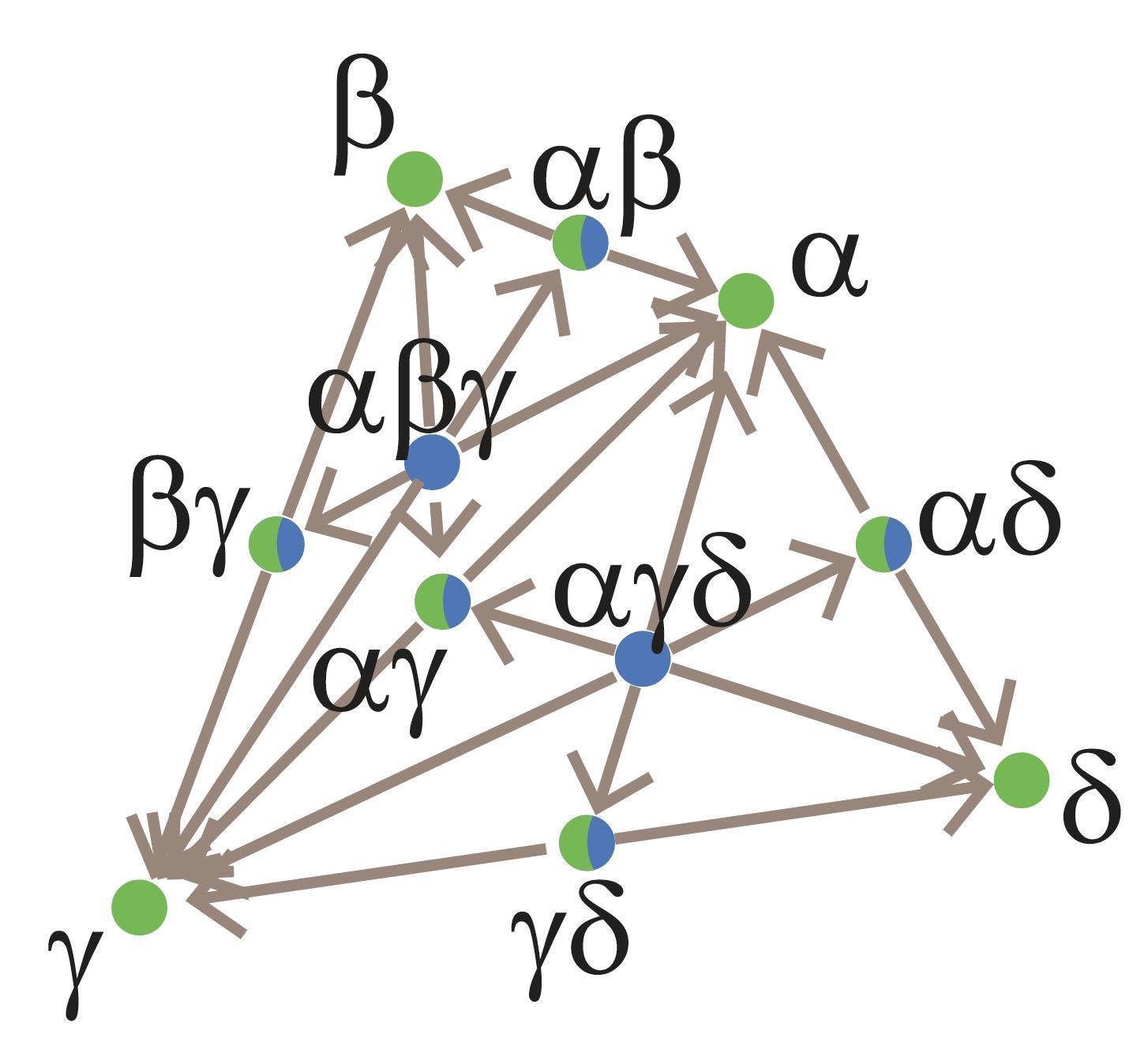 With the bitstrings based on this partition, the formulas of this diagram (in Greek notation) can be represented as follows: