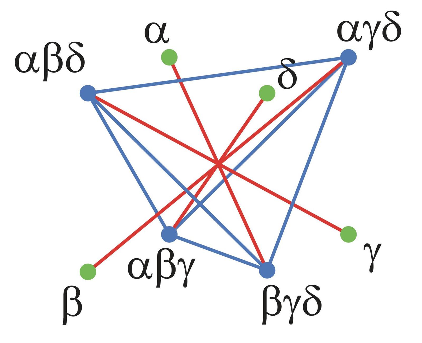 With the bitstrings based on this partition, the formulas of this diagram (in Greek notation) can be represented as follows: