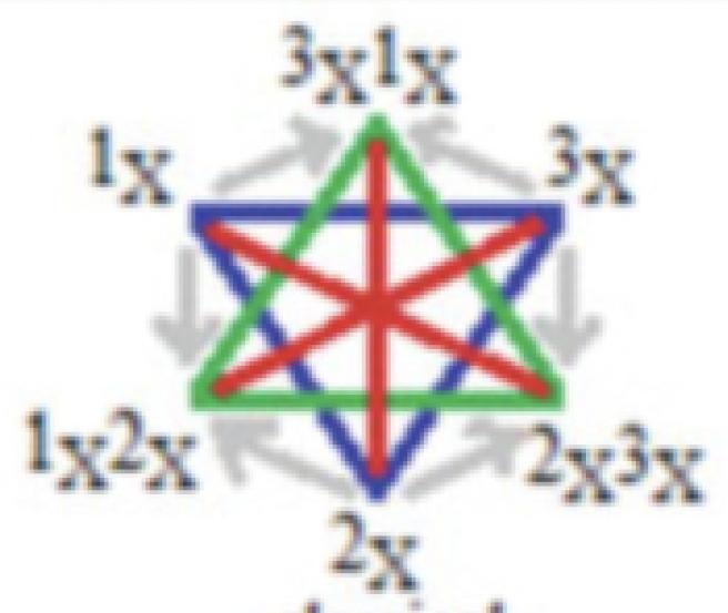 - Angot-Pellissier’s sheaf-theoretical construction of the oppositional tri-triangle [2013] (2020) - the 3 bi-triangles (i.e. oppositional hexagons) of the tri-triangle - classical bi-triangle