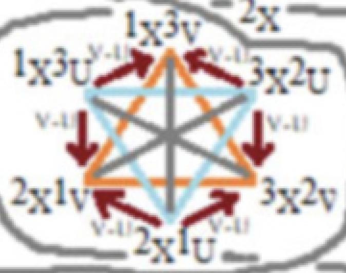Angot-Pellissier’s sheaf-theoretical construction of the oppositional quadri-triangle [2014] - the 6 bi-triangles (i.e. logical hexagons) of the quadri-triangle