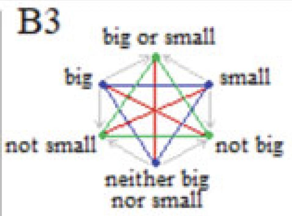 - Segment, triangle, tetrahedron: the increasing expressive power of the bi-simplicial oppositional structures - the hexagon (B3) (3-opposition) also expresses contrariety
