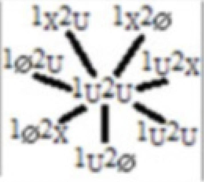 - Synoptical view of the kinds of tri-simplicial opposition relation each vertex has with any possible vertex