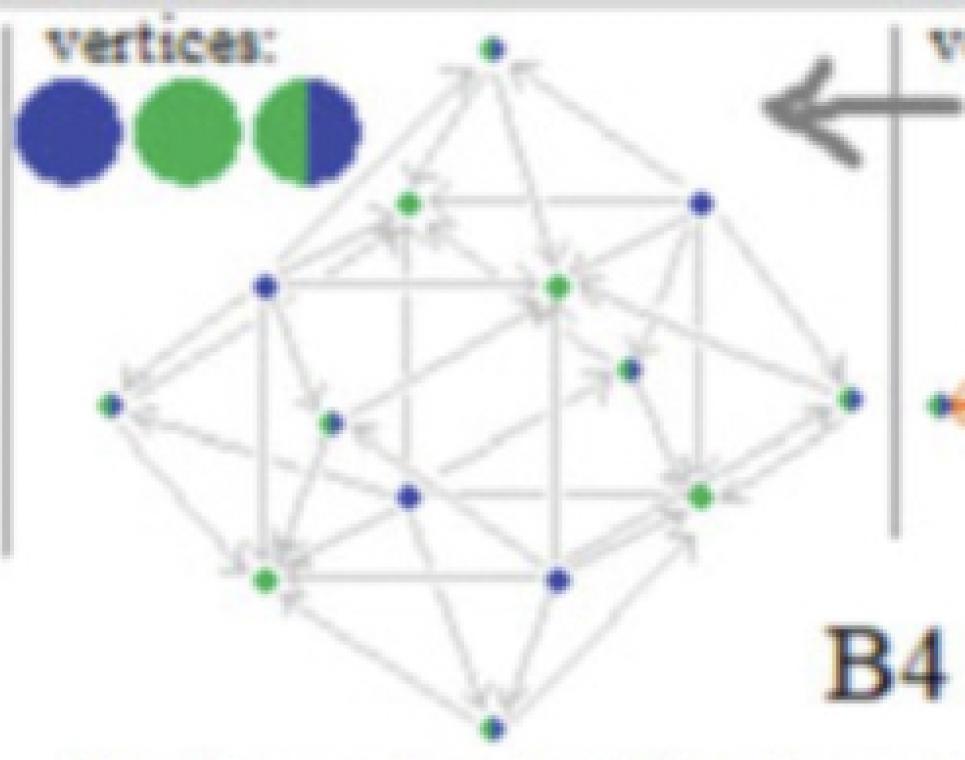 - By coloring the vertices one can distinguish “kernel” and “cloud” (or “envelope”) of a bi-simplicial B4 - the closure, i.e. the B4