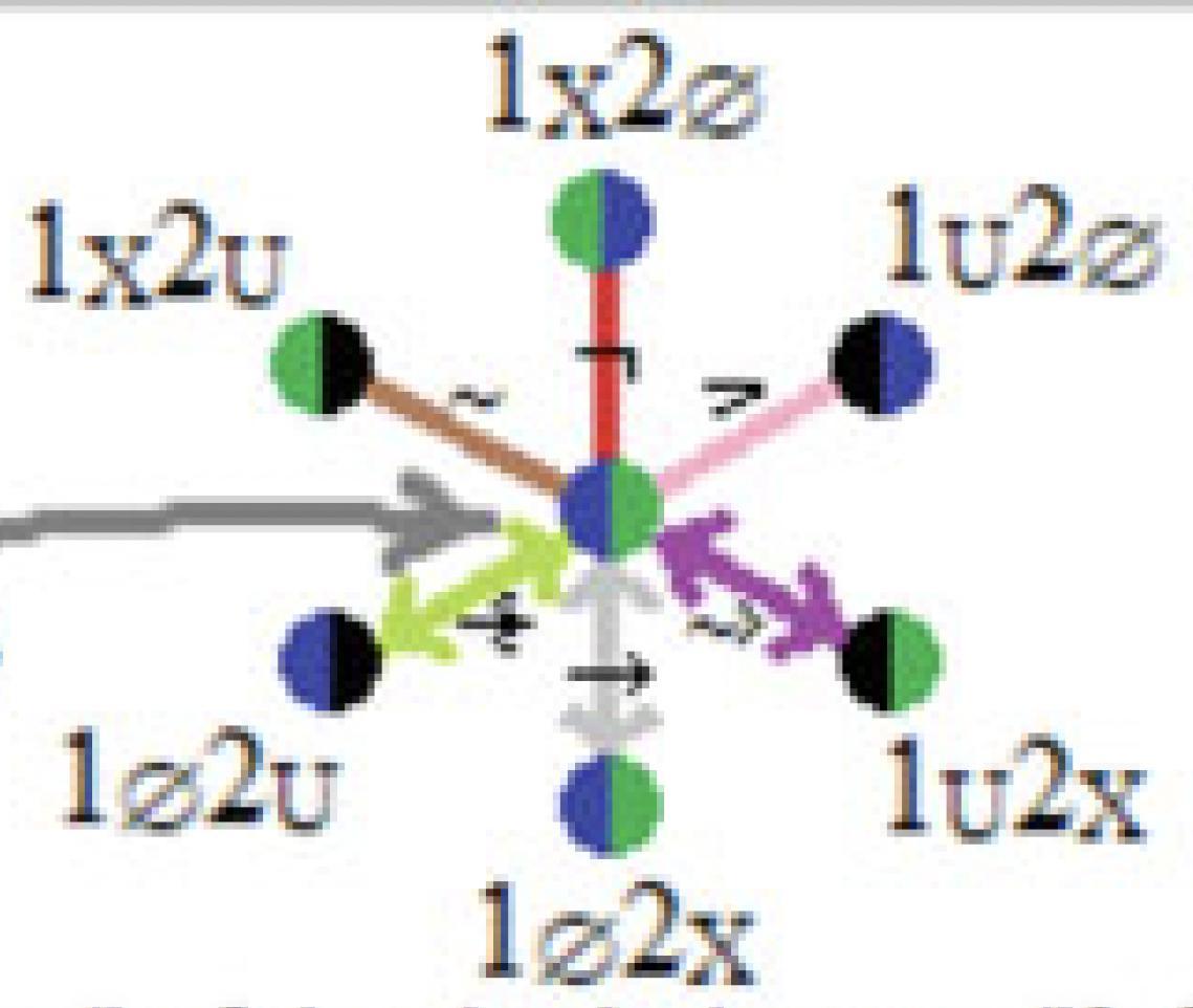 - Establishing the "oppositional horizon" of the classical vertices $1_X2_\emptyset$ and $1_\emptyset2_X$ - the "oppositional horizon" of the classical vertex "$1_\emptyset2_X$"