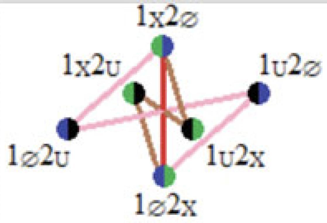 - Three equivalent views of the tri-chromatic “contradictions circuit” of the oppositional tri-segment - octahedral view