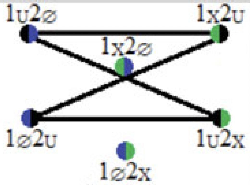 - Three equivalent views of the monochromatic “neo-simplicial circuit” of the oppositional tri-segment - trihedral view