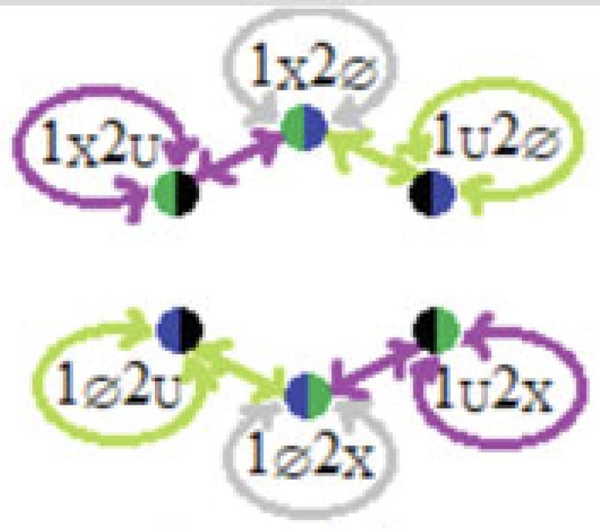 - Three equivalent views of the tri-chromatic “subalternations circuit” of the oppositional tri-segment - hexagonal view