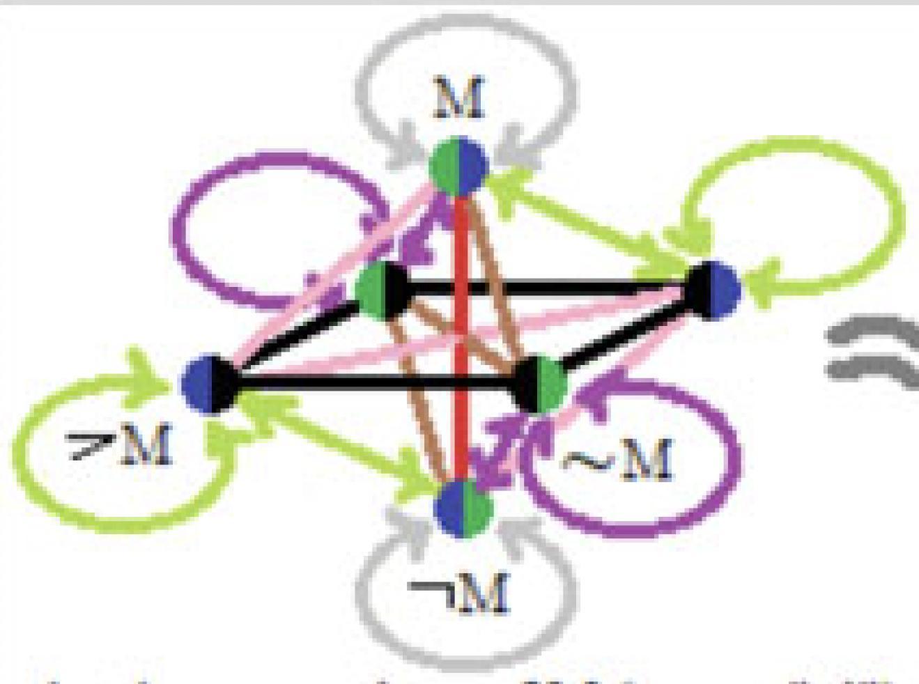 - The possible concatenations of iterations of the three kinds of negations reach a stable “semantic distribution” - the three negations of M (square "xi")