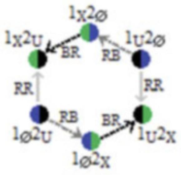 - Global decomposed view of the “implicative side” of the tri-segment, simplified (R and not L)