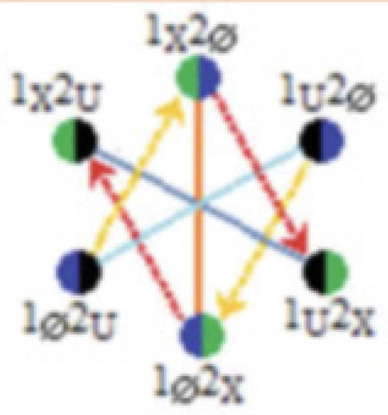 - The possible “inner circuits” of the “implication geometry” version of the tri-segment - non-implication