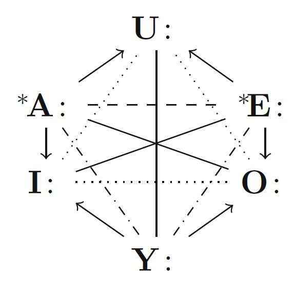 Error in the diagram: *E should be E, while O should be *O (cf. p. 498).