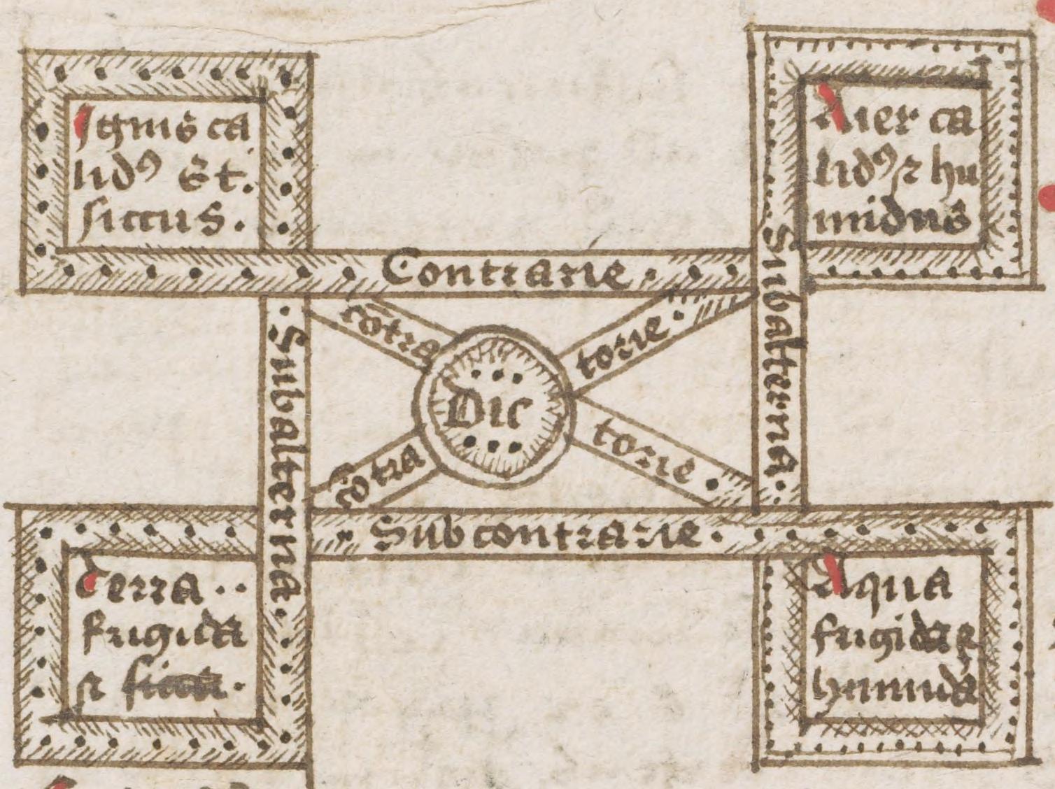 - The Aristotelian relations (CD,C,SC,SA) hardly seem applicable in this diagram, which shows the four elements from Aristotelian natural philosophy: