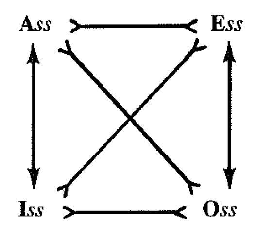 - Ass and Iss are tautological (under the assumption of existential import), while Ess and Oss are contradictory (under that same assumption). Hence this diagram contains only non-contingent formulas, and is thus a sigma-0 diagram.