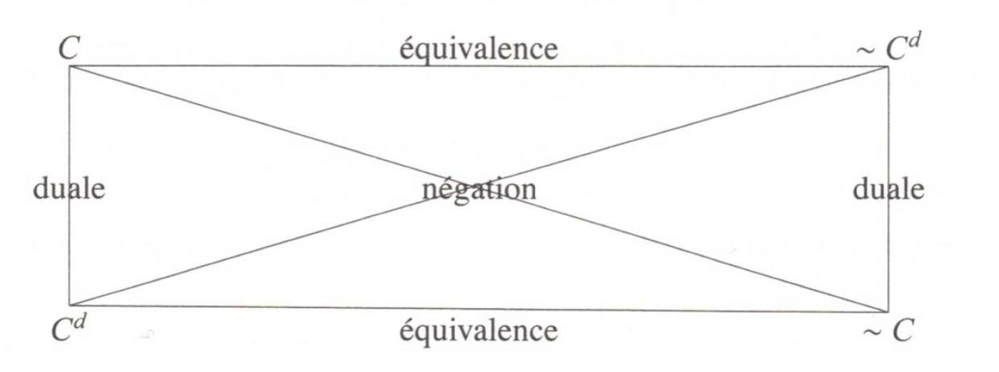 - The term 'dual(e)' is used in a non-standard sense here. For example, the dual of $A \wedge B$ is not defined as $A \vee B$, but rather as $\neg A \vee \neg B$.
