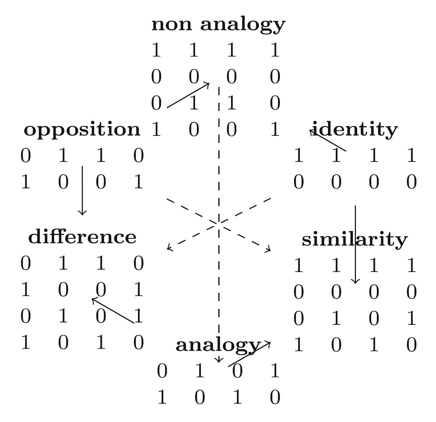 - Moretti’s and Béziau’s hexagons induced by decomposing analogy and paralogy truth tables. The hexagons show the patterns for which the corresponding vertices are true