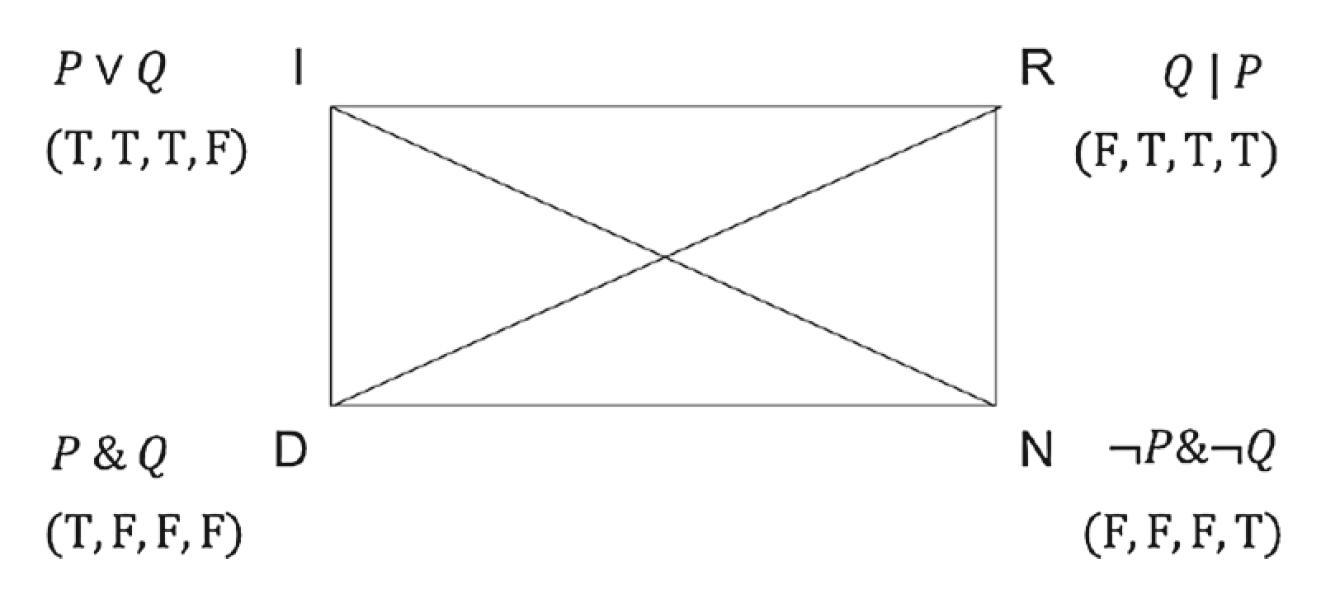 - In this classical sigma-2 diagram, contrariety is at the bottom edge and subcontrariety is at the top edge; the subalternations go from the lower to the upper vertices.
