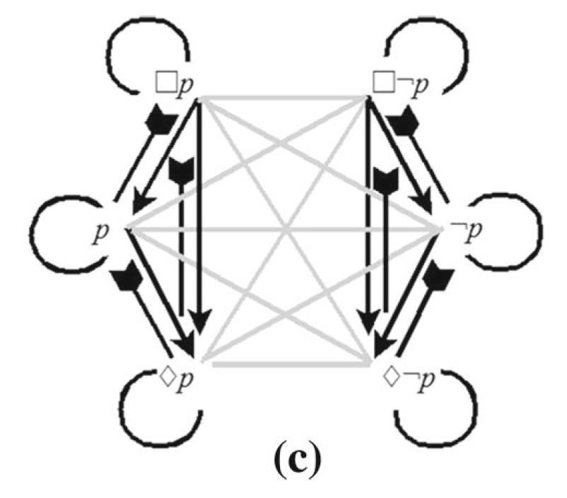 - The a opposition, b Aristotelian and c implication Sherwood-Czeżowski hexagon for $\ \{\Box p, \Box\neg p, \Diamond p, \Diamond\neg p, p, \neg p\}$